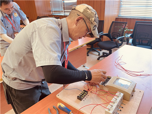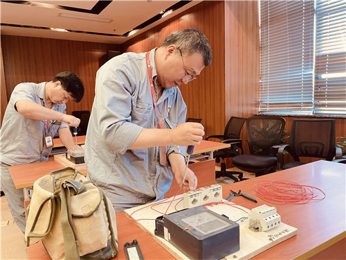 為了更好地提升企福物業(yè)工程人員專業(yè)能力、提高服務(wù)質(zhì)量,企福物業(yè)從2019年開始設(shè)立了工程人員專業(yè)水平等級評定。今年的評定從6月開始,共分為資質(zhì)、理論、實操、內(nèi)部滿意度共四個部分。資質(zhì)即學(xué)歷、證書,占比20%;理論占比30%,考試內(nèi)容包含了電力、日常維修等各方面,著重考核了觸電現(xiàn)場急救措施;實操占比30%,考試內(nèi)容包含智能電表設(shè)置參數(shù)和接線,電器的接線兩大板塊;內(nèi)部服務(wù)滿意度占比20%,由各個園區(qū)主管、保潔經(jīng)理、保安經(jīng)理、安全經(jīng)理等共同評定。評定工作全方位考量了工程人員的專業(yè)水平。